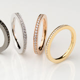 Pierres de diamètre 1.5 mm pour 0,50 carat avec de légères variations selon les tailles de doigts.