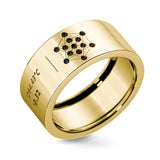 Or 750/1000 (18 carats). Disponible en or gris paladié rhodié blanc, or jaune, or rose ou or noir.