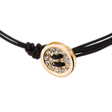 Élégant et discret, facile à porter en toutes occasions, Lovebouton est par excellence, le symbole du lien d'amour ou d’amitié. Petit bijou chic, unisexe et précieux à la forme douce et universelle, il siéra parfaitement au vestiaire féminin comme au masculin. La fermeture du bracelet se fait par une boutonnière dans lequel s'insère le bouton précieux avec 17 diamants pour 0,10 carats. Le double cordon est réglable pour la taille du poignet. Lovebouton Or 750/1000 blanc, jaune, rose ou noir & diamants blancs, livré avec un cordon coton.